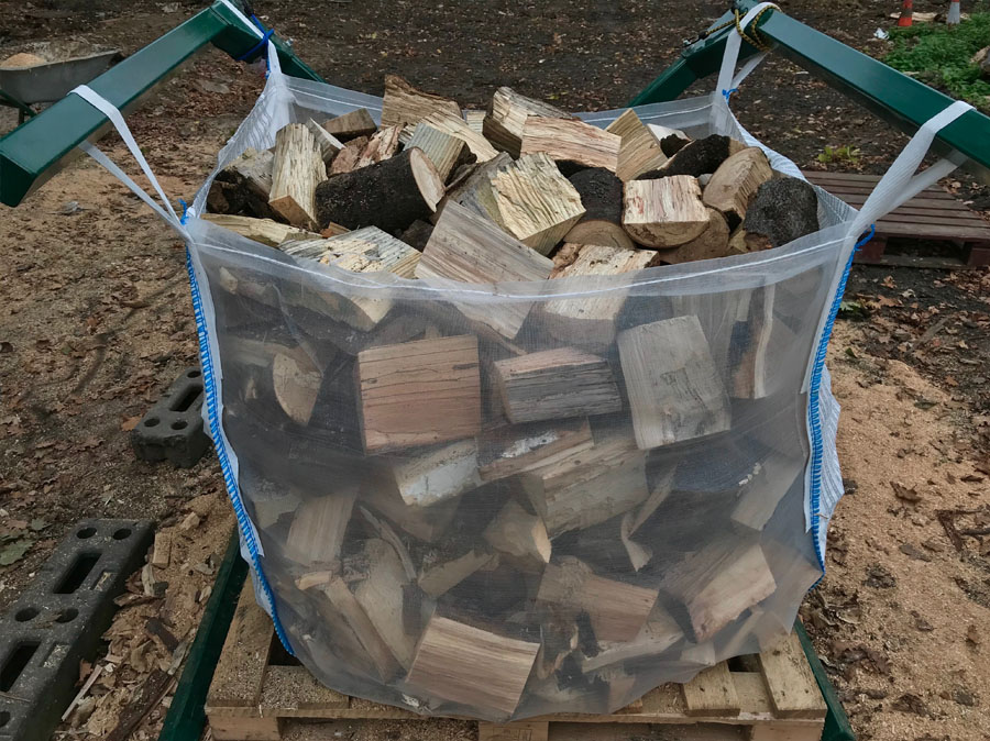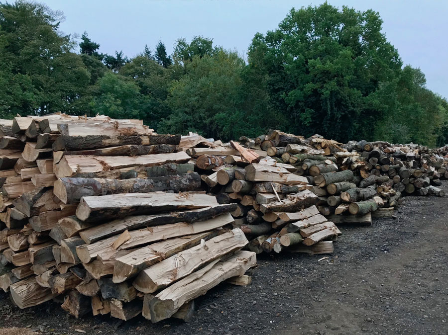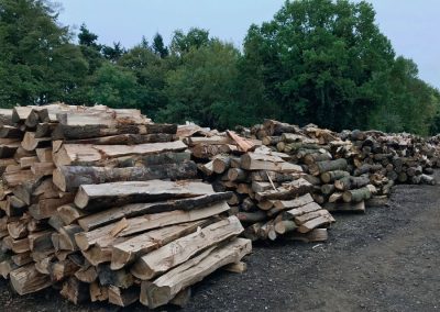 Once the trees have been felled we transport them back to our yard at Ingham, near Bury St Edmunds in Suffolk, where they are stacked and split into billets. They are then left to naturally season for approximately one year (or longer), after which they are cut and split again into logs through our firewood processor. Lastly, they are elevated into ventilated bags, which are then stacked on pallets and covered, before being delivered to our lovely customers.